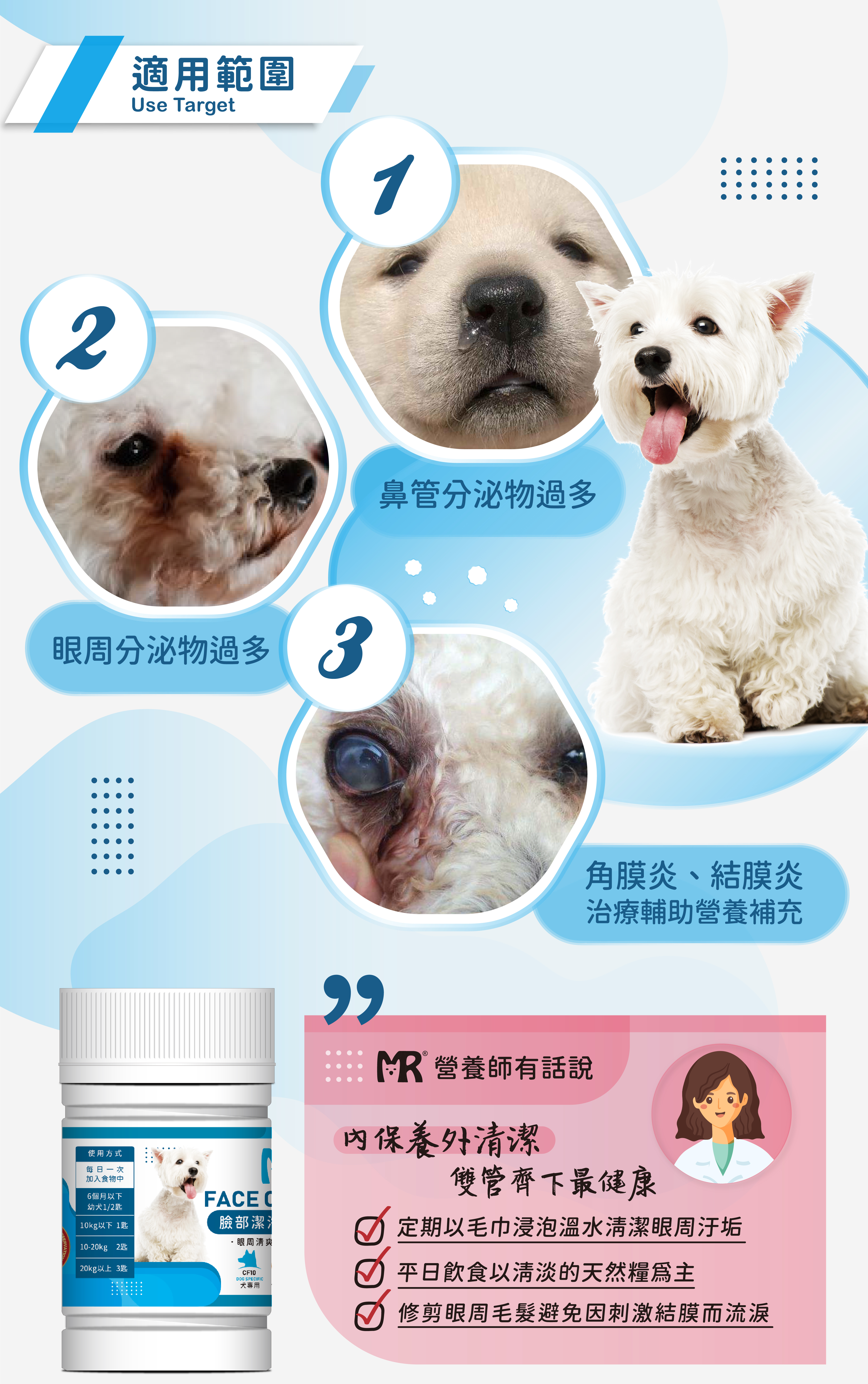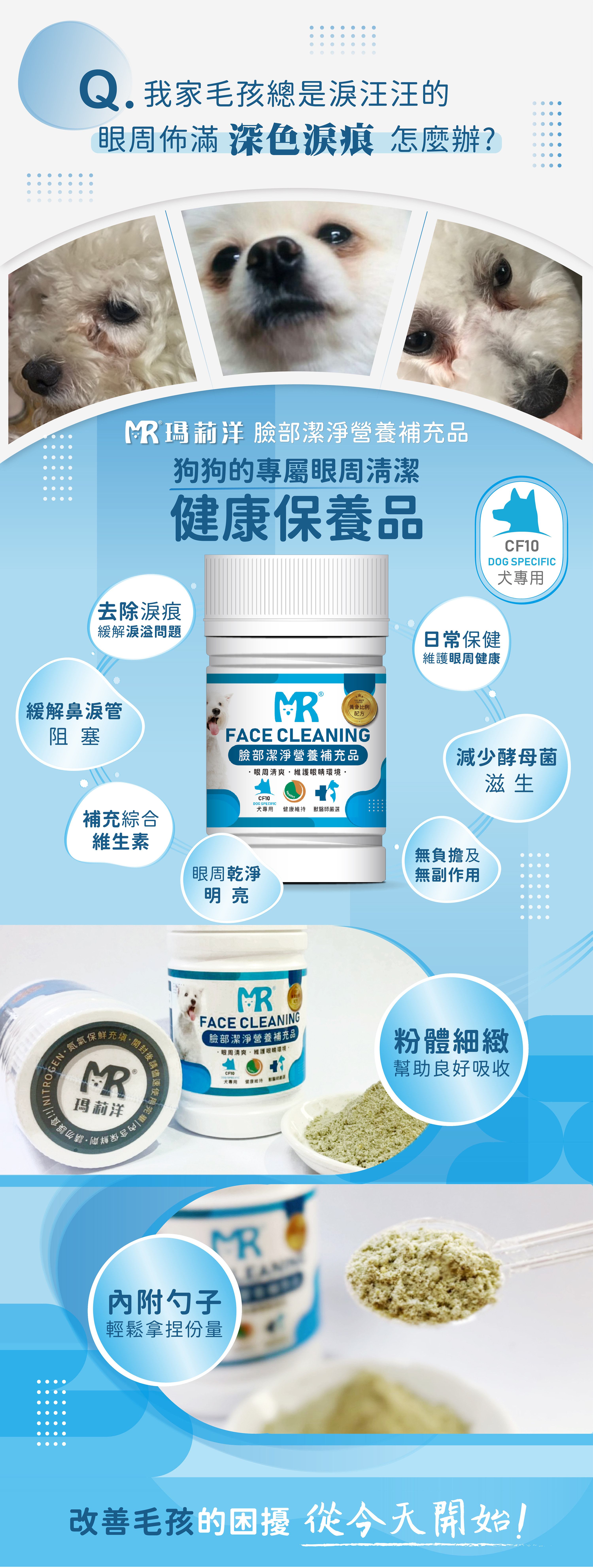 瑪莉洋,臉部潔淨,營養粉,去淚痕,去淚溢,眼屎,眼淚腺,淚液,眼睛分泌物,眼周保養,犬用去淚痕,瑪莉洋去淚痕