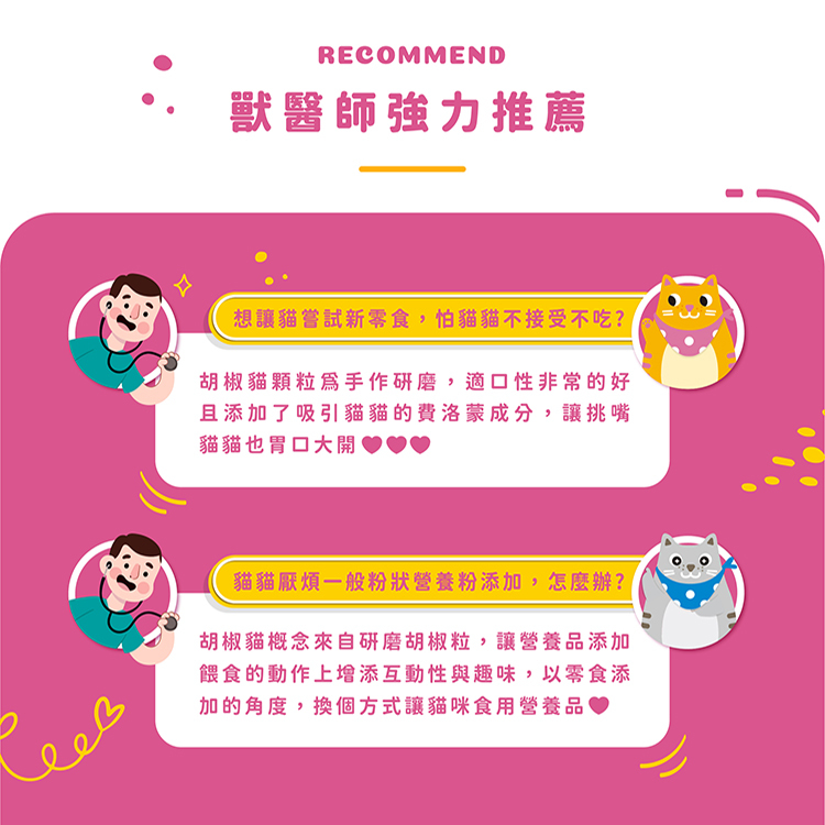 交互式貓咪營養零食,藉由研磨零食增進飼主與貓咪間的互動,環保玻璃罐可重複裝填使用。