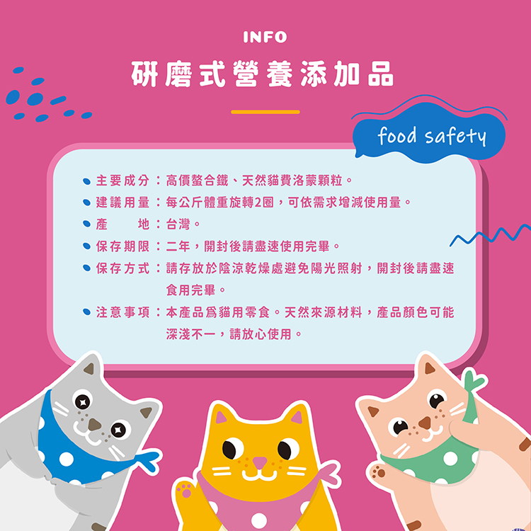 ✔ 可依照貓咪喜歡的口感,調整粉末顆粒大小