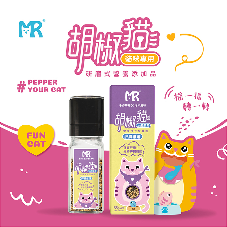 交互式貓咪營養零食,藉由研磨零食增進飼主與貓咪間的互動,環保玻璃罐可重複裝填使用。